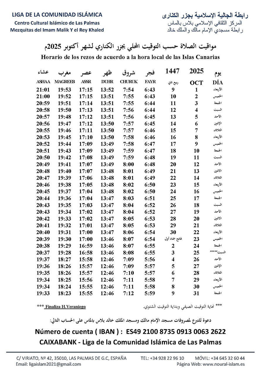 مواقيت الصلاة لشهر رمضان 1447هـ
